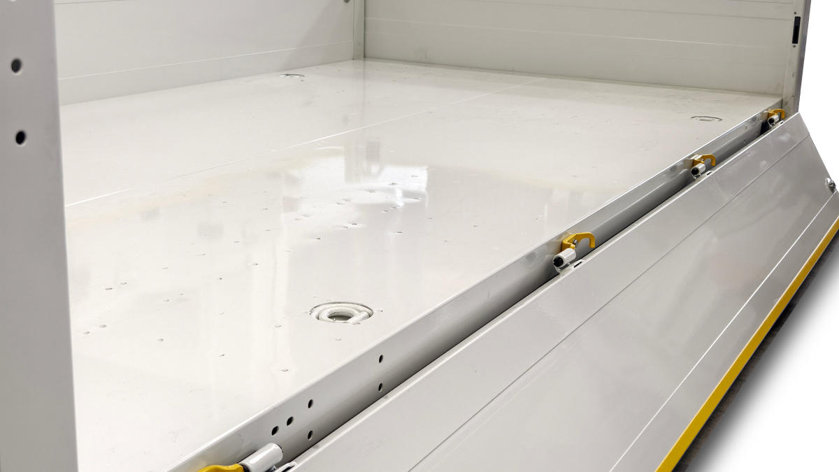 Le coffre dos cabine est standard en version hybride (structure en haute résistance acier et portes aluminium)