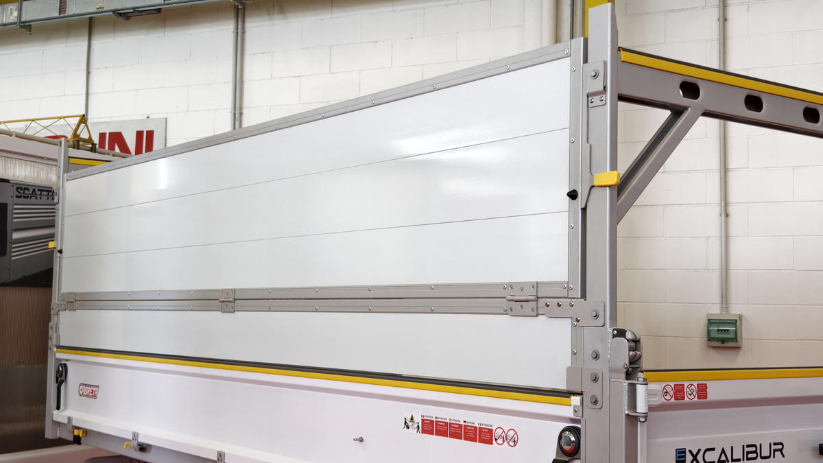 Le protège-cabine amovible est une exclusivité CABRETA en acier Z140 galvanisé à chaud ou aluminium d'épaisseur appropriée, avec une excellente résistance à la corrosion, pourvu de grandes ouvertures pour la visibilité du conducteur à l'arrière.