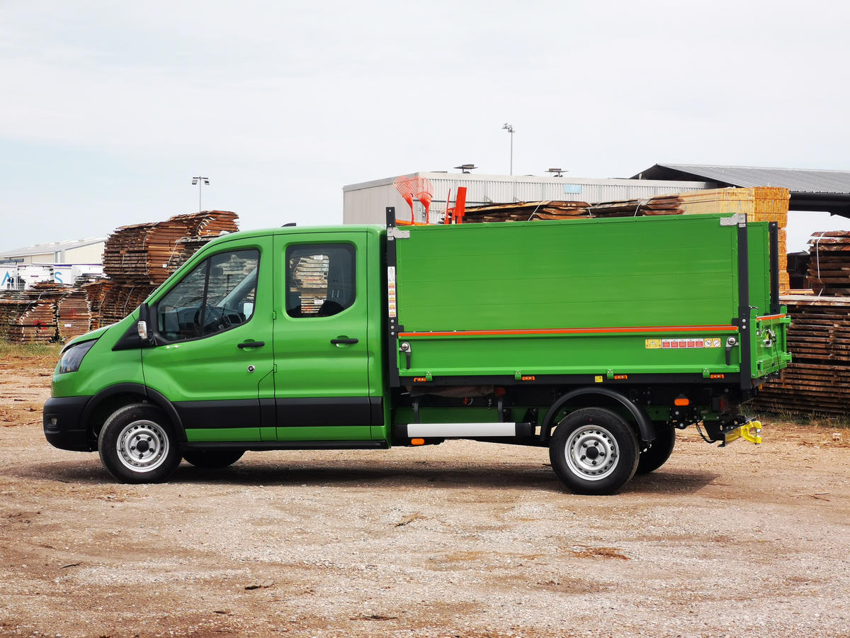 La benne est renforcée aux points critiques puis pourvue d'un traitement cataphorèse et d'un revêtement en poudre polyester.